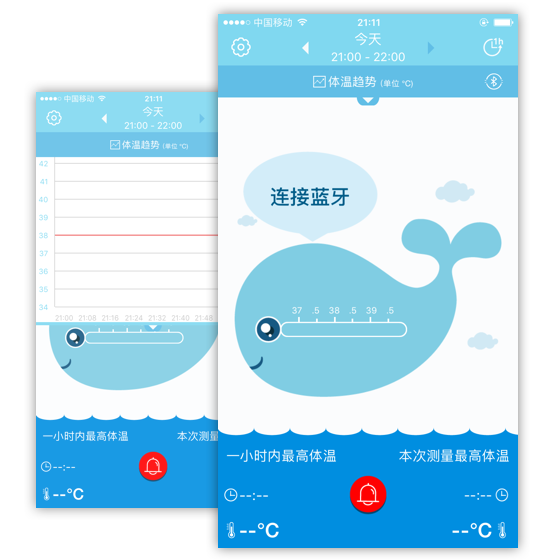 电子体温计是一款监测婴幼儿体温变化的智能体温计,与APP配合使用,可实时查看体温变化并绘制体温曲线图 扫一扫二维码: